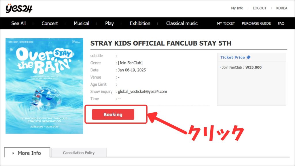 登録が済んだら「STARY KIDS OFFICIAL FANCLUB STAY 5TH」のページから入会手続きを進めます。
