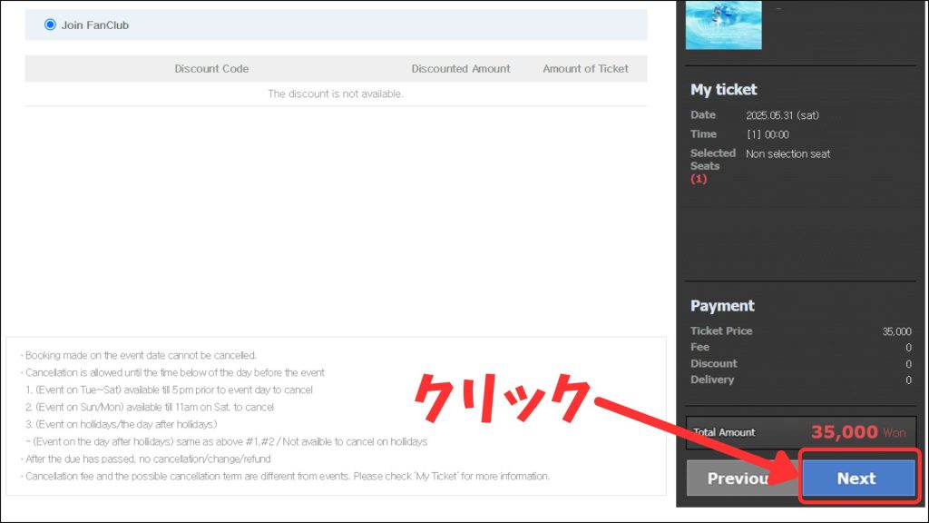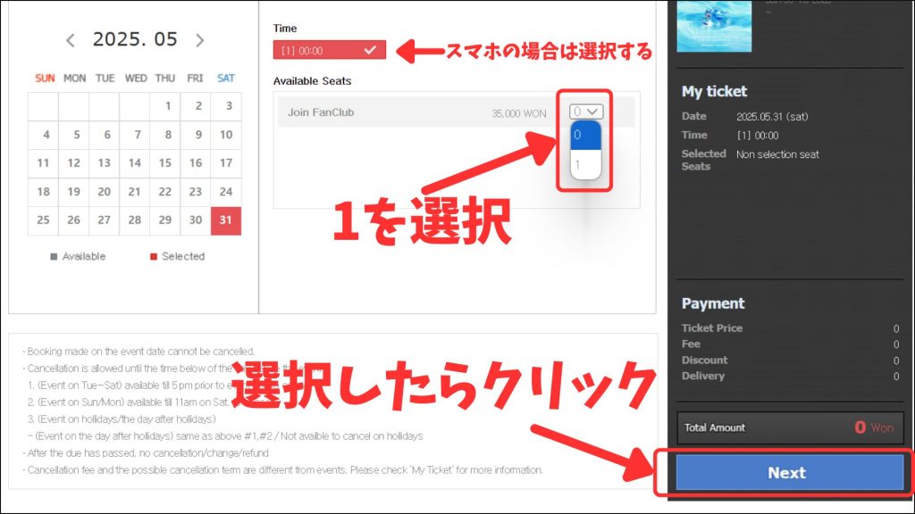 今回は公演ではなくFC入会なので時間は00:00で大丈夫です。