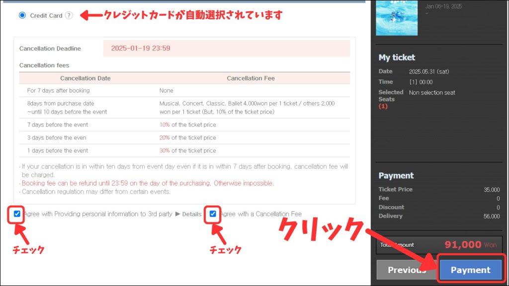 2カ所のチェックボックスにチェックして[Payment]を押して進みます。