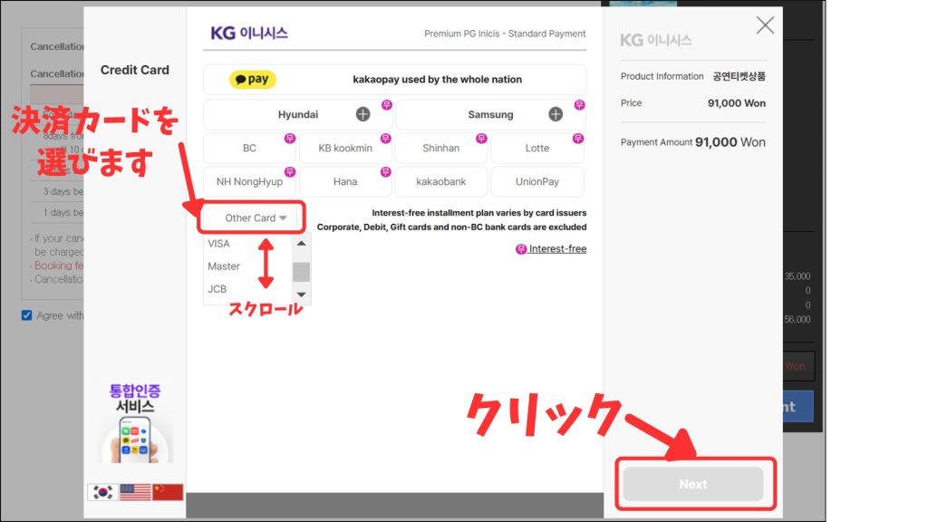 日本のカードはOther Cardに含まれているので、希望のものを選びます。
